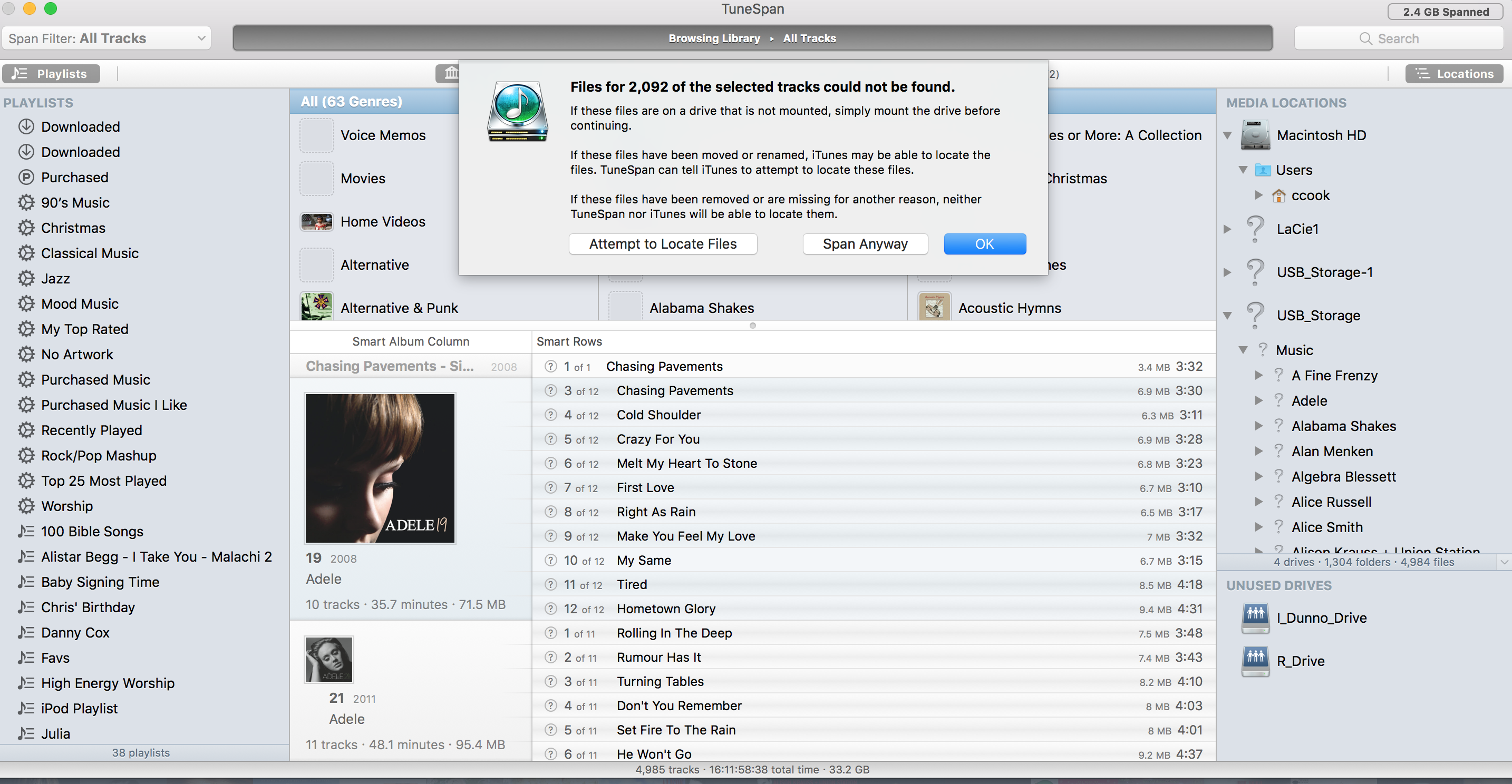 Then, just click Span and TuneSpan should find all the files in the new location and just quickly update the locations in iTunes.